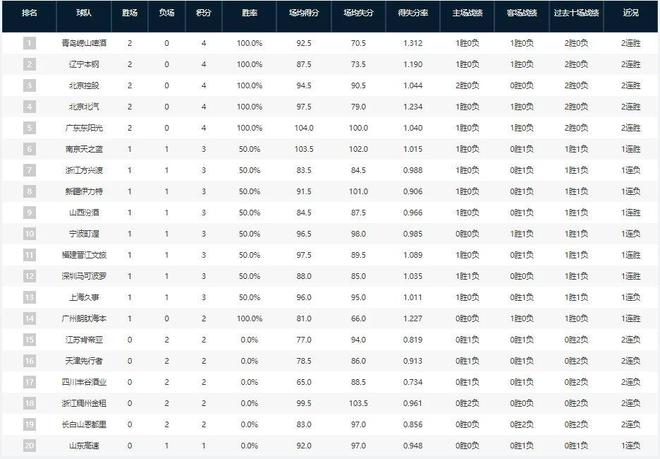 CBA最新排名!青岛第一山东垫底,辽宁第二广东第五 北京双雄四强