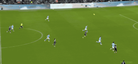 哈兰德全场只有1次射门,为曼城生涯主场踢满全场时并列最少