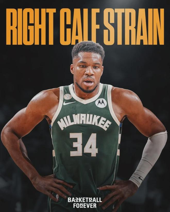 坏消息,雄鹿队扬尼斯·阿德托昆博小腿拉伤,将缺席2-4周