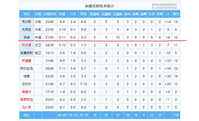 全场下来,埃迪得到12分10篮板,该数据略低于他的赛季平均数据13.6分11.1篮板。