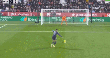 第65分钟,威尼修斯左路突破,随后造成林孔犯规,裁判示意点球。第67分钟,姆巴佩操刀命中,打进第14个联赛进球,为皇马扳平比分,1-1!