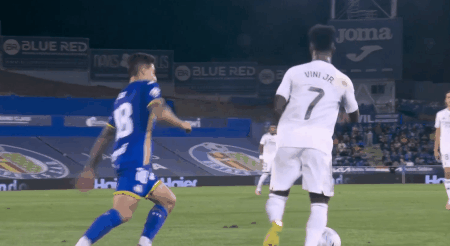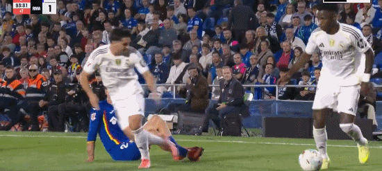 第84分钟,圣克里斯踢倒维尼修斯,两黄变一红被罚下,赫塔菲仅剩9人。