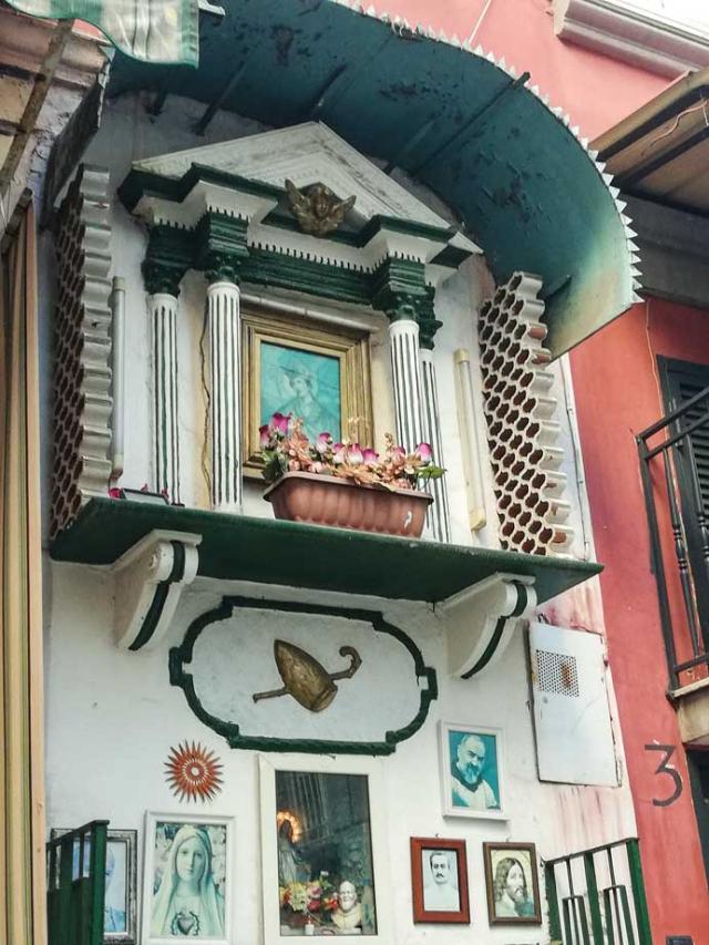 直到有一天,一个修士想出了一个聪明的主意。他说:“把圣雅纳略的圣像放在灯下,我倒要看看谁敢去熄灭。”于是,那些试图熄灯的人就犹豫了——谁敢去灭圣人的灯?就这样,充满那不勒斯特色的“祈祷龛”诞生了。这种路边圣龛,其实是一种照明的伎俩:你可以在街上点灯,但名义上是为圣母或圣雅纳略点的,如果有人去熄灭,那就是对圣人不敬。这一巧思让那不勒斯的狭窄街巷终于得以被光照亮。