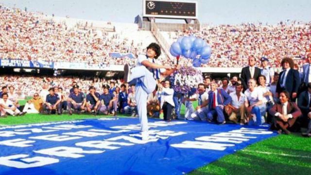 说回马拉多纳。人们给他披上那条围巾,他开始颠球,以他标志性的优雅姿态面对七万名观众。那样的场面,在足球史上从未出现过。俱乐部原本只打算在召开记者会的地方为他举办亮相仪式,那其实是圣保罗球场旁边的一块小篮球场,可当他们看到那股人潮,临时决定打开大门,让大家都进来。