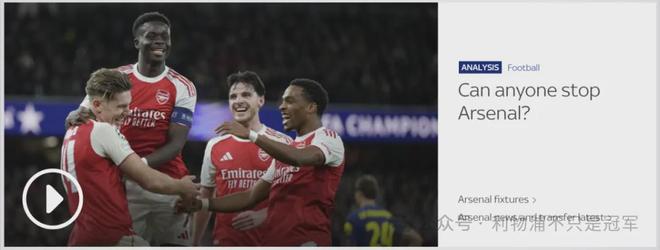 阿森纳目前是最适应英超的争冠球队,全英超都推崇定位球,他们在这方面最强。但到明年三四月份,阿森纳会感到紧张,因为他们太久没拿冠军了。而利物浦和曼城需要做的,就是不要被阿森纳拉开太多分数,否则,就算阿森纳紧张也追不上了。