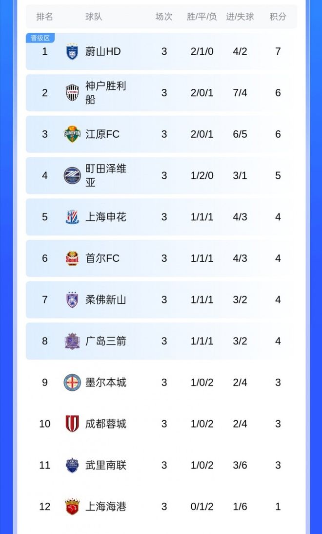 亚冠精英联赛第3轮结束了所有比赛,最新积分榜如下!