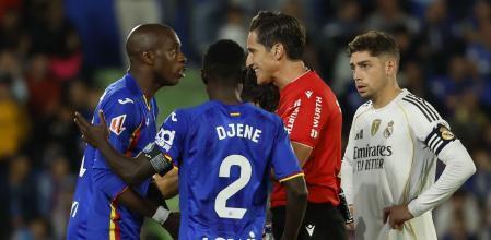 北京时间10月20日,在西甲第9轮的比赛中,9人作战的赫塔费在主场0-1不敌皇家马德里,其中喀麦隆的防线老将恩约姆在替补上场仅仅37秒之后就被直接出示红牌罚下,赛后当值主裁何塞-穆努埃拉在裁判报告里解释了自己的决定。