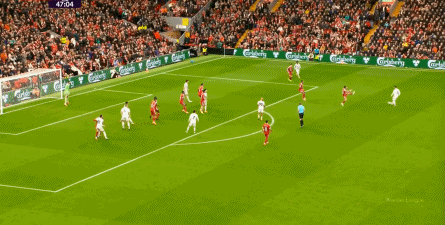 所以在70分钟区间,比赛彻底进入到了利物浦的节奏之中,曼联的防守已经变得非常脆弱,所以足以改写比分的进攻一浪接着一浪: